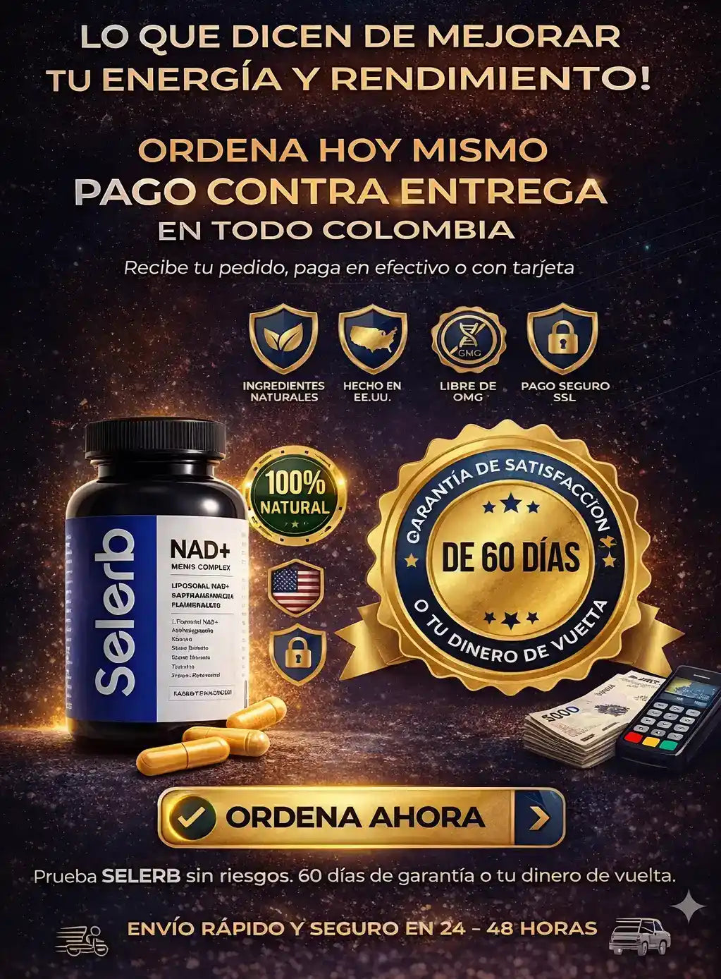 Selerb trabaja en varios niveles al mismo tiempo: Energía celular (NAD+) Circulación y flujo (óxido nítrico) Resistencia física Bienestar masculino integral 👉 No es un suplemento más. Es una fórmula completa pensada para hombres.